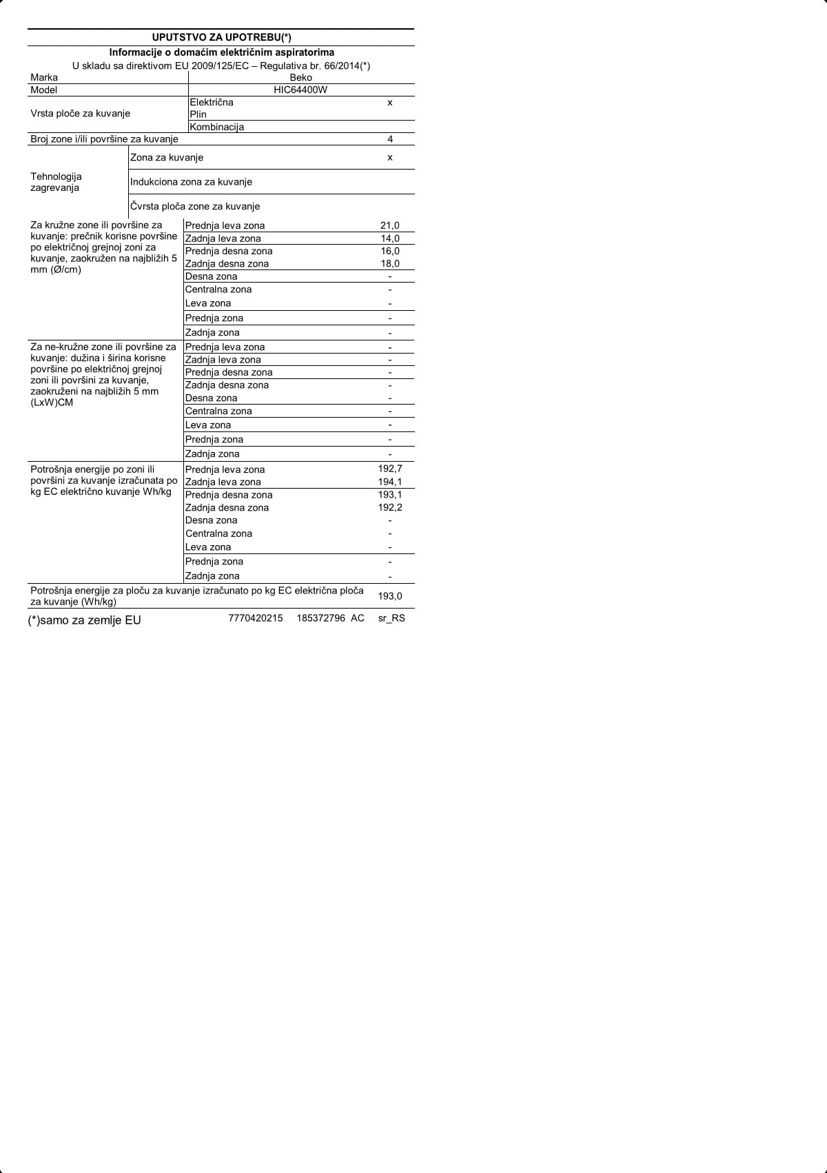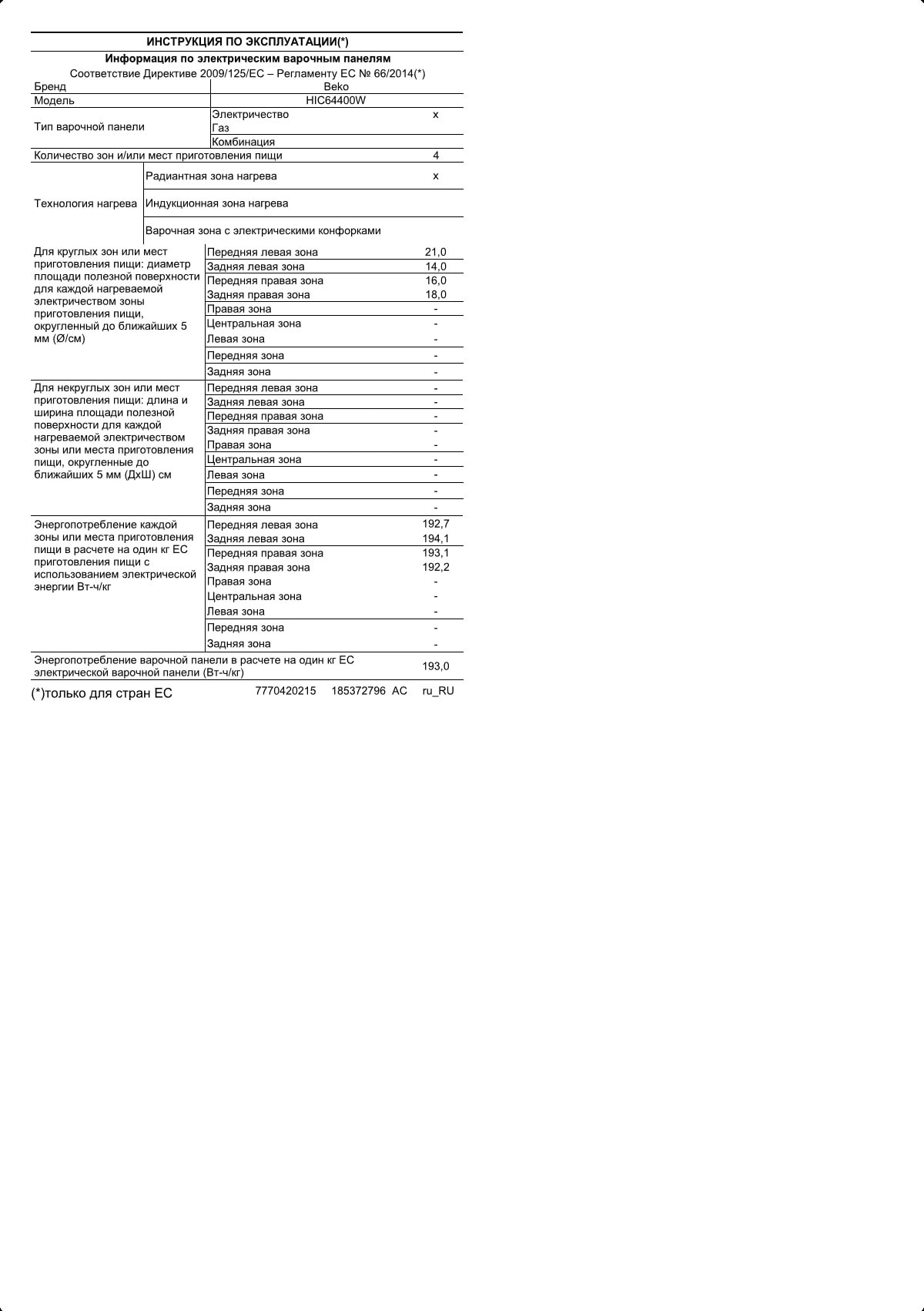 HIC64400W: Встраиваемая варочная поверхность (Стеклокерамика, 60 см)