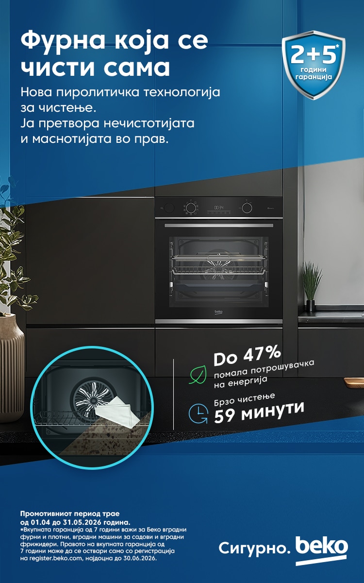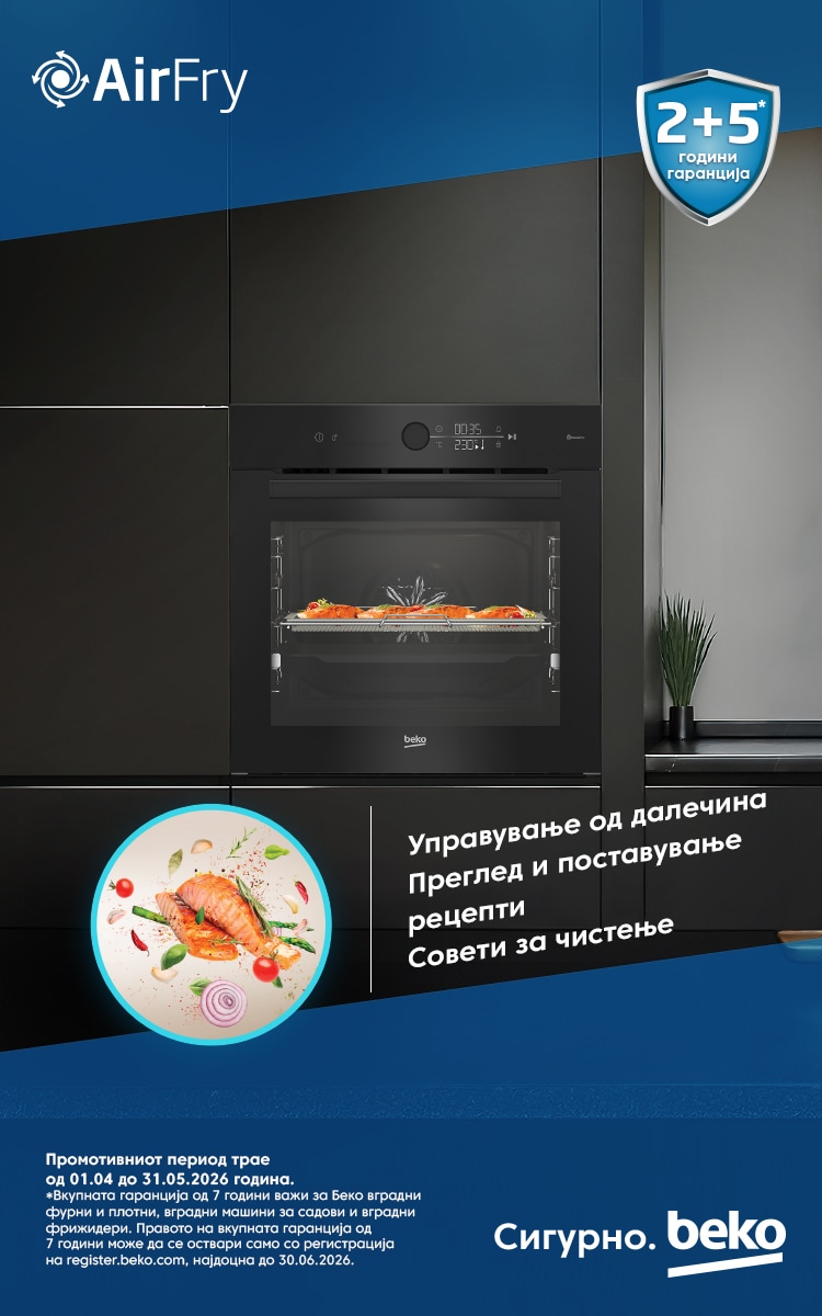 Beko рерната во боја Deep Black е совршен избор за кујни со темни фронтови. Нјанси на сиво, графит и црно се совршено вклопуваат во минималистичкиот дизајн на овие рерни. Квалитетните материјали исто така гарантираат долготрајна и сигурна употреба на уредот.