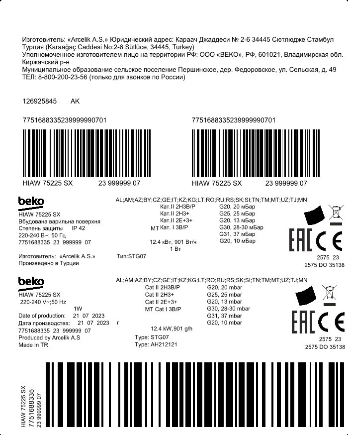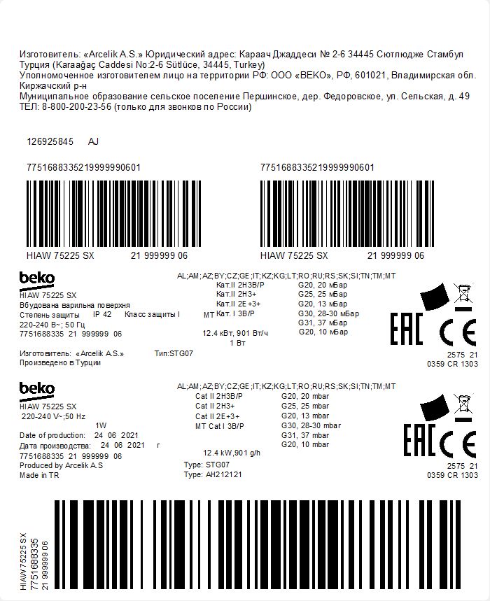 HIAW 75225 SX: Вградена плоча за готвење (Гас, 75 cm)