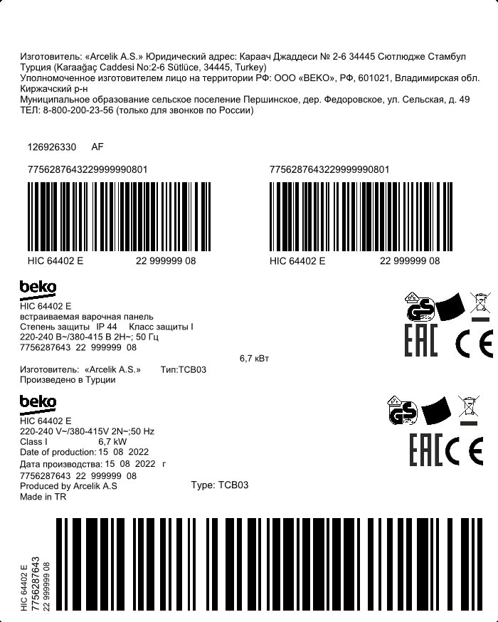 HIC 64402 E: Вградена плоча за готвење (Витроцерамичен, 60 cm)