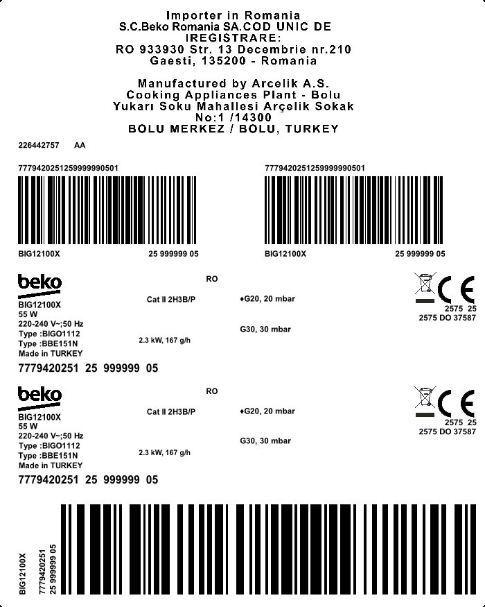 BIG12100X: Built-In Oven (60 cm, 66 L)