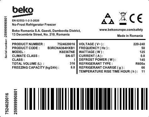 B3RCNA364HXB1: Fridge Freezer (Freezer Bottom, 59.5 cm)