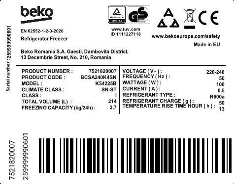 BCSA240K4SN: 54 cm Statisch Combi bottom Geïntegreerde koelvries combinaties