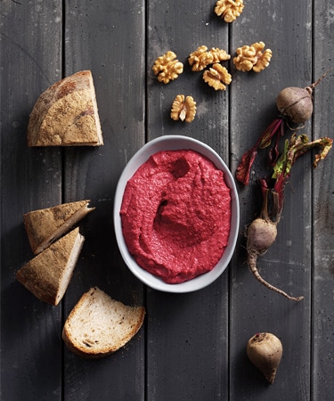 4. Peel the beetroot and coarsely chop. Put in a food processor.