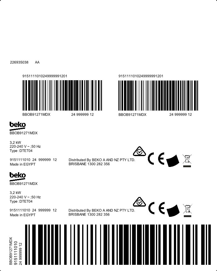 BBOB91271MDX: Built-In Oven ('Double Oven, 127 L)