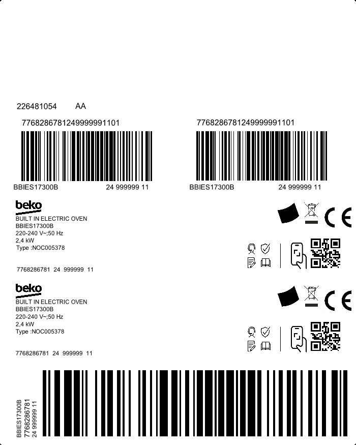 BBIES17300B: Piekarnik do zabudowy (60 cm 72 L)