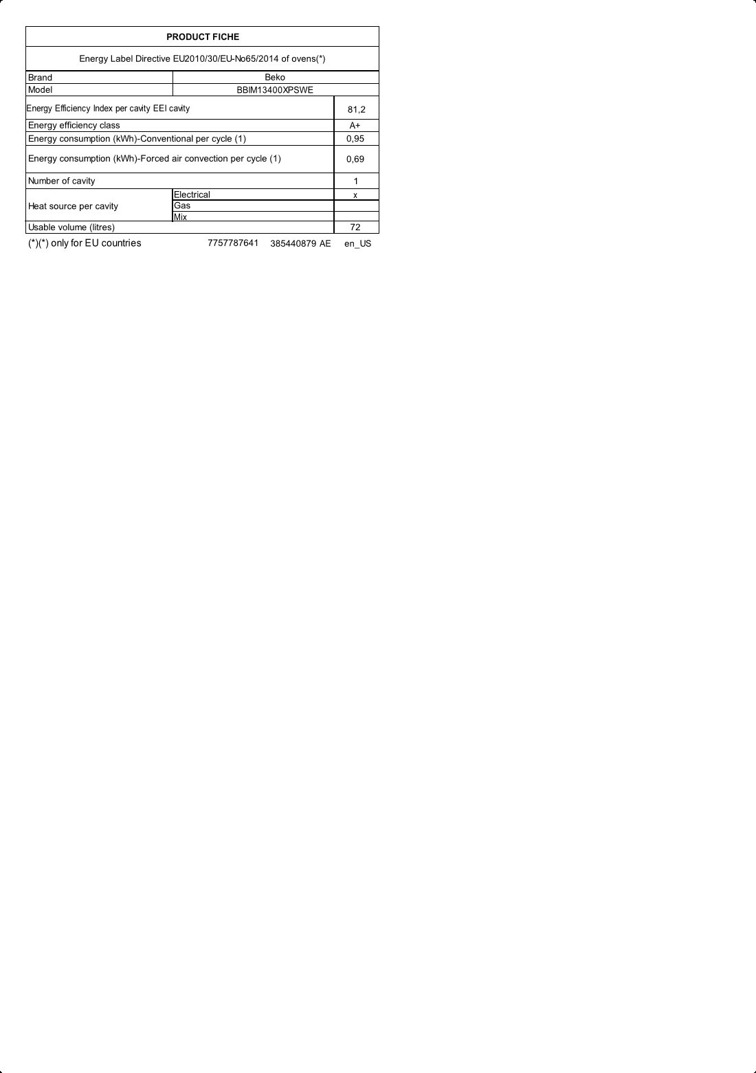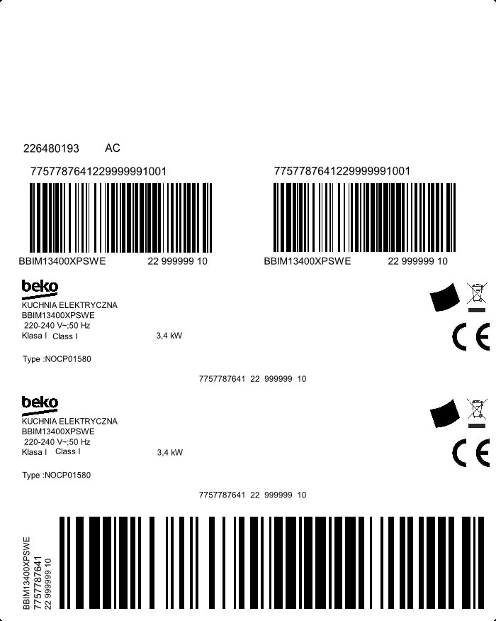 BBIM13400XPSWE: Piekarnik do zabudowy (60 cm 72 L)