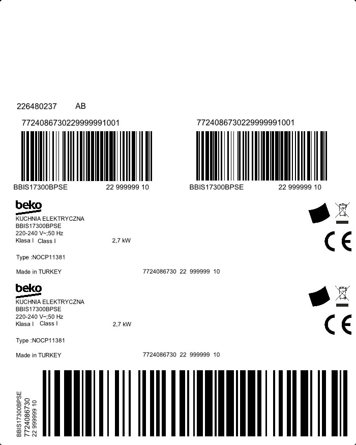 BBIS17300BPSE: Piekarnik do zabudowy (60 cm 72 L)