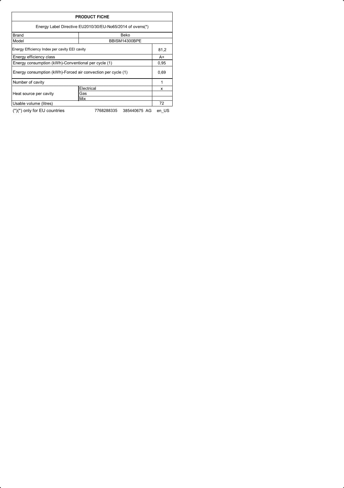 BBISM14300BPE: Piekarnik do zabudowy (60 cm 72 L)