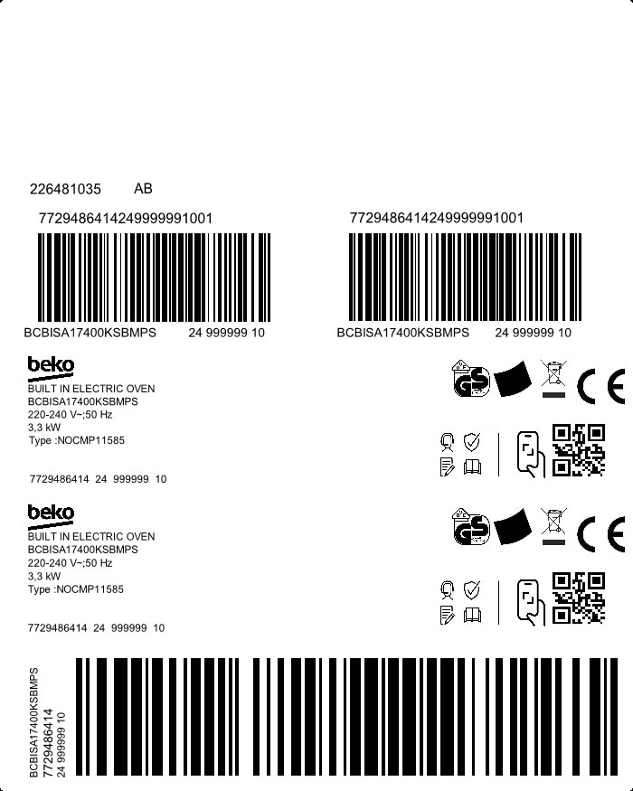 BCBISA17400KSBMPS: Piekarnik do zabudowy (60 cm 72 L)