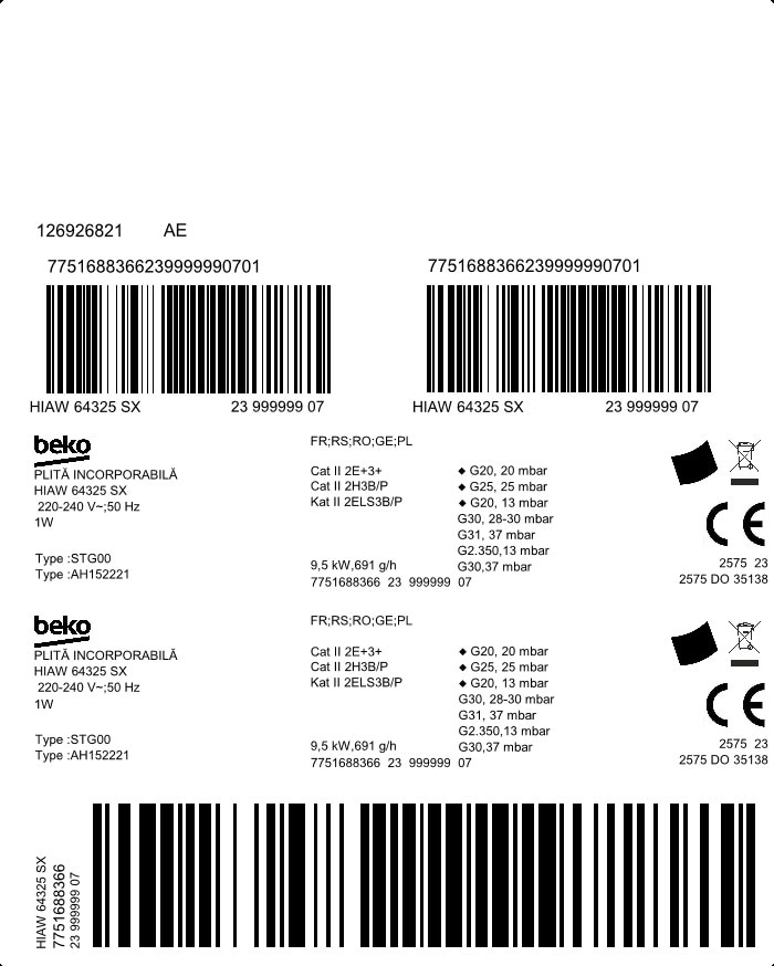 HIAW 64325 SX: Płyta do zabudowy (Gazowy, 60 cm)