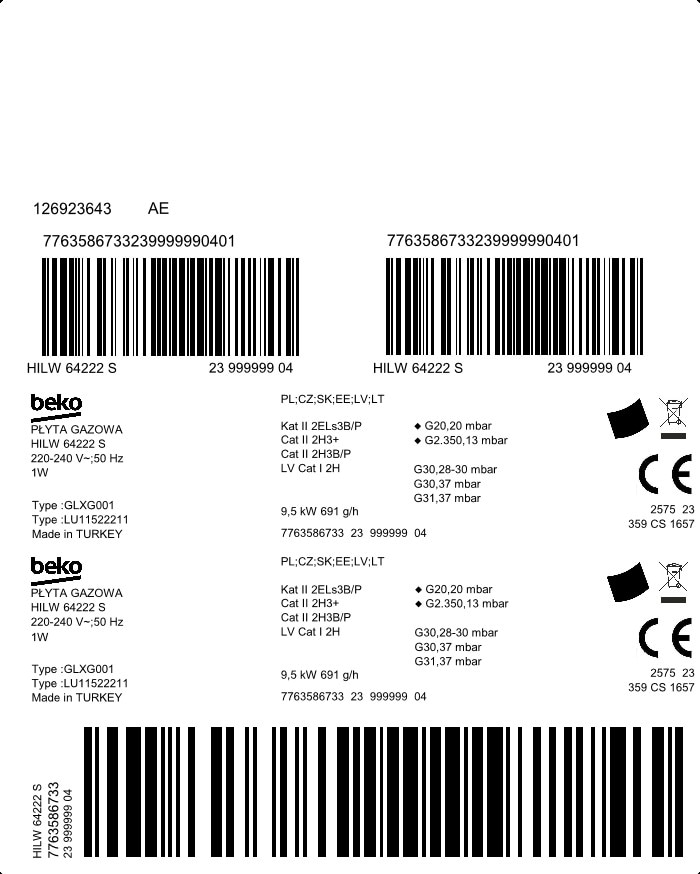HILW 64222 S: Płyta do zabudowy (Gazowy, 60 cm)
