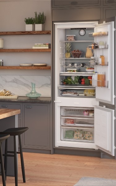 Es tentador llenar tu nueva nevera nueva con alimentos inmediatamente después de enchufarla, pero es recomendable esperar hasta que alcance la temperatura adecuada. Este proceso puede tardar varias horas: cargar la nevera antes de tiempo puede forzar el compresor y afectar la conservación de los alimentos.