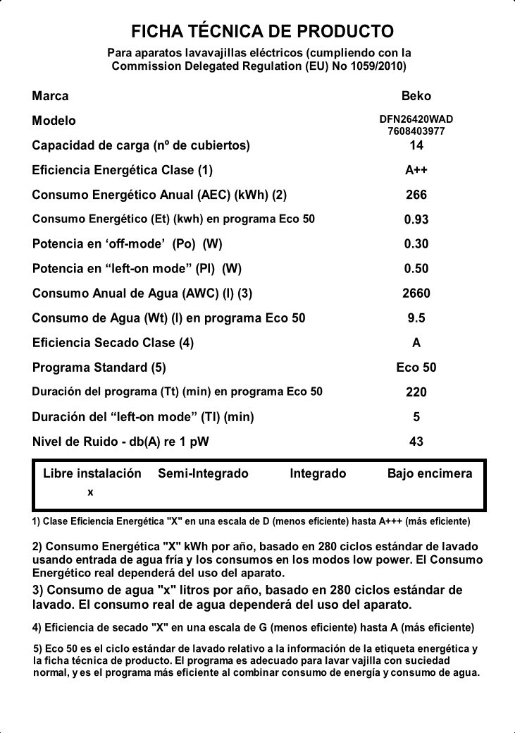 DFN26420WAD: Máquina Lavar Loiça AutoDose 14 conjuntos