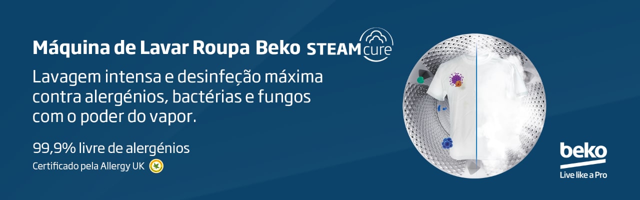 Certificado pela Allergy UK, as máquinas de lavar roupa SteamCure™ eliminam 99,9% dos alergénios e 97,8% das bactérias e fungos.