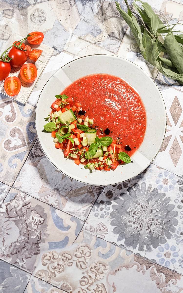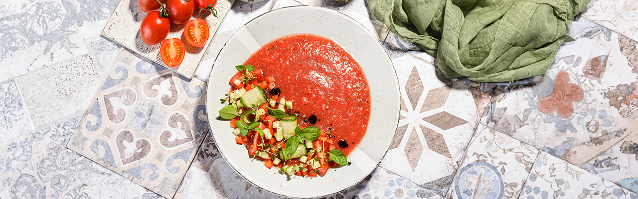 Gazpacho este o supa rece revigoranta, care provine din indepartata Spanie. Ideala pentru zilele toride de vara, aceasta reteta a ajuns sa fie preparata de oameni din toate colturile lumii, evoluand permanent de la simplitatea orginala, pana la delicatesele versatile si sofisticate din prezent.
