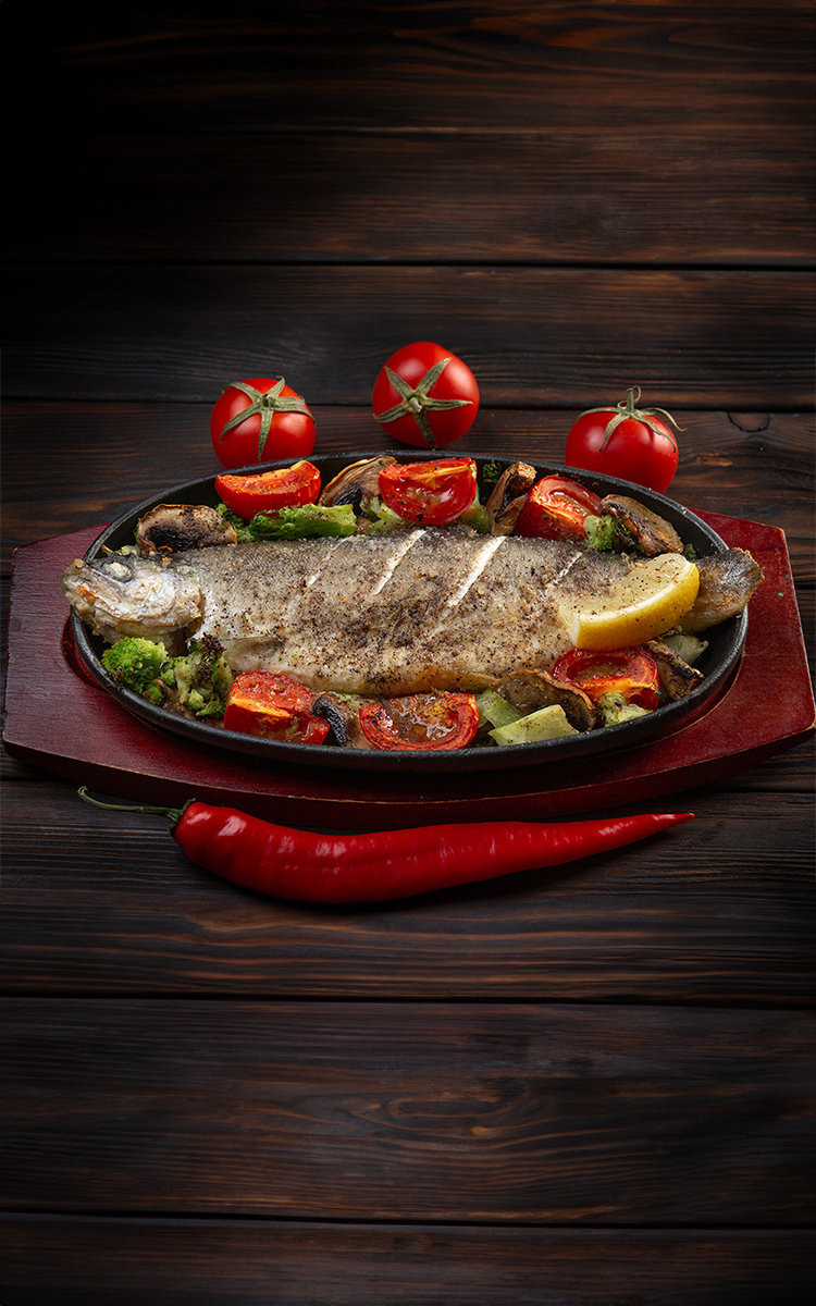 Prin prepararea sa la cuptor, pastravul se pastreaza suculent, astfel incat savurarea lui devine o experienta deosebita. Legumele proaspete, gatite laolalta cu pestele, adauga un contrast plin de texturi si arome, o simfonie de gusturi care incanta simturile.