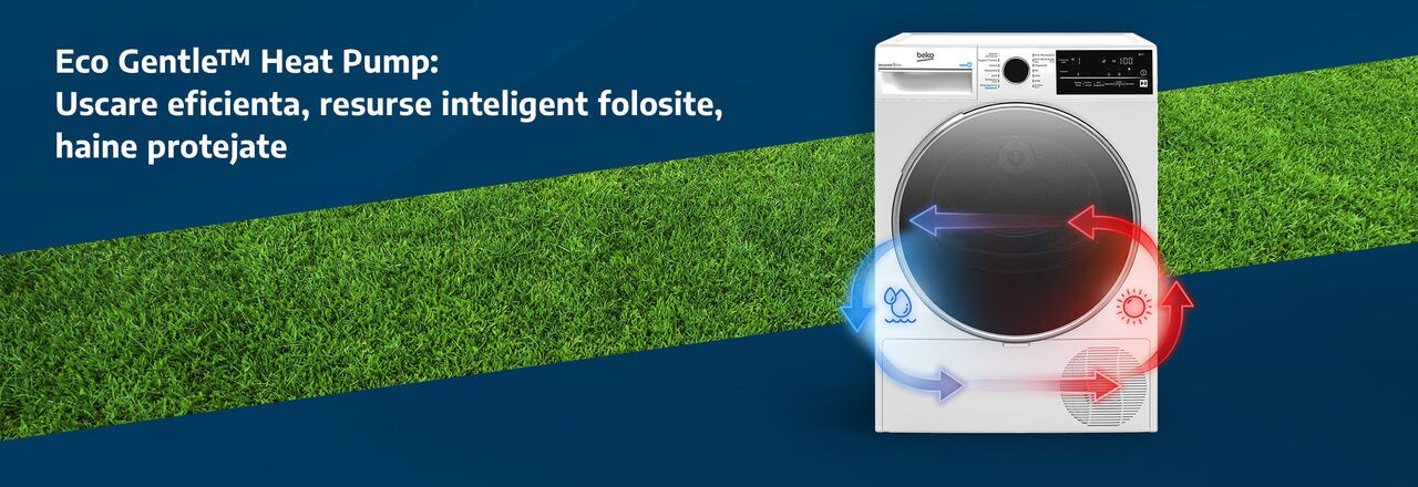 Poti usca hainele usor cu tehnologia Eco Gentle™ Heat Pump,