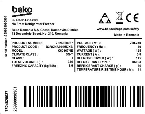 B3RCNA364HDXB: (Combina frigorifica, 59.5 cm)