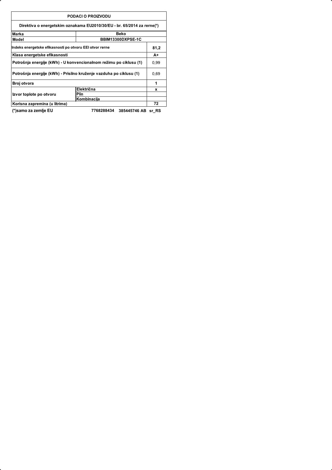 BBIM13300DXPSE-1C: Ugradna rerna (60 cm 72 L)
