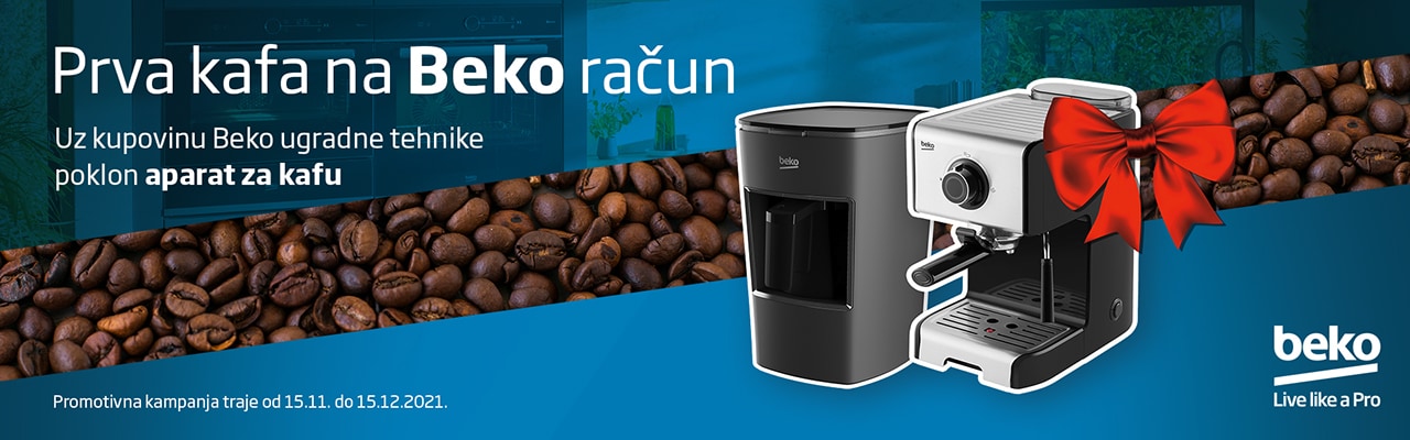 Uz kupovinu Beko ugradne tehnike ukupne vrednosti od 120.000 dinara ili više, na poklon dobijate aparat za espresso kafu CEP 5152B ili aparat za tursku kafu BKK 2300G.