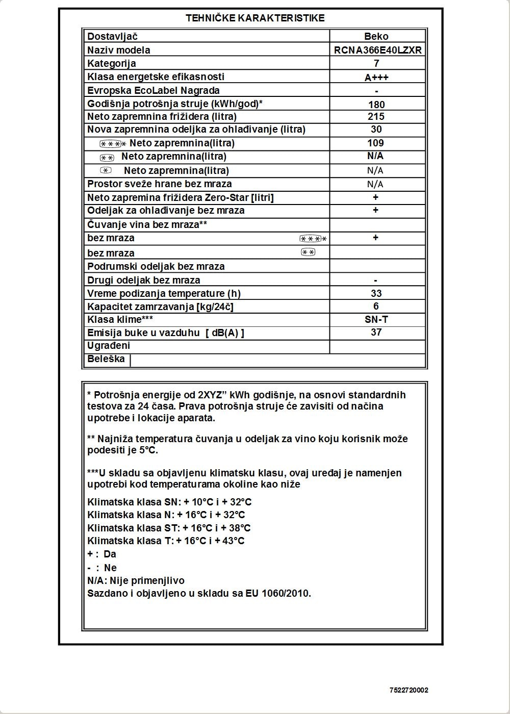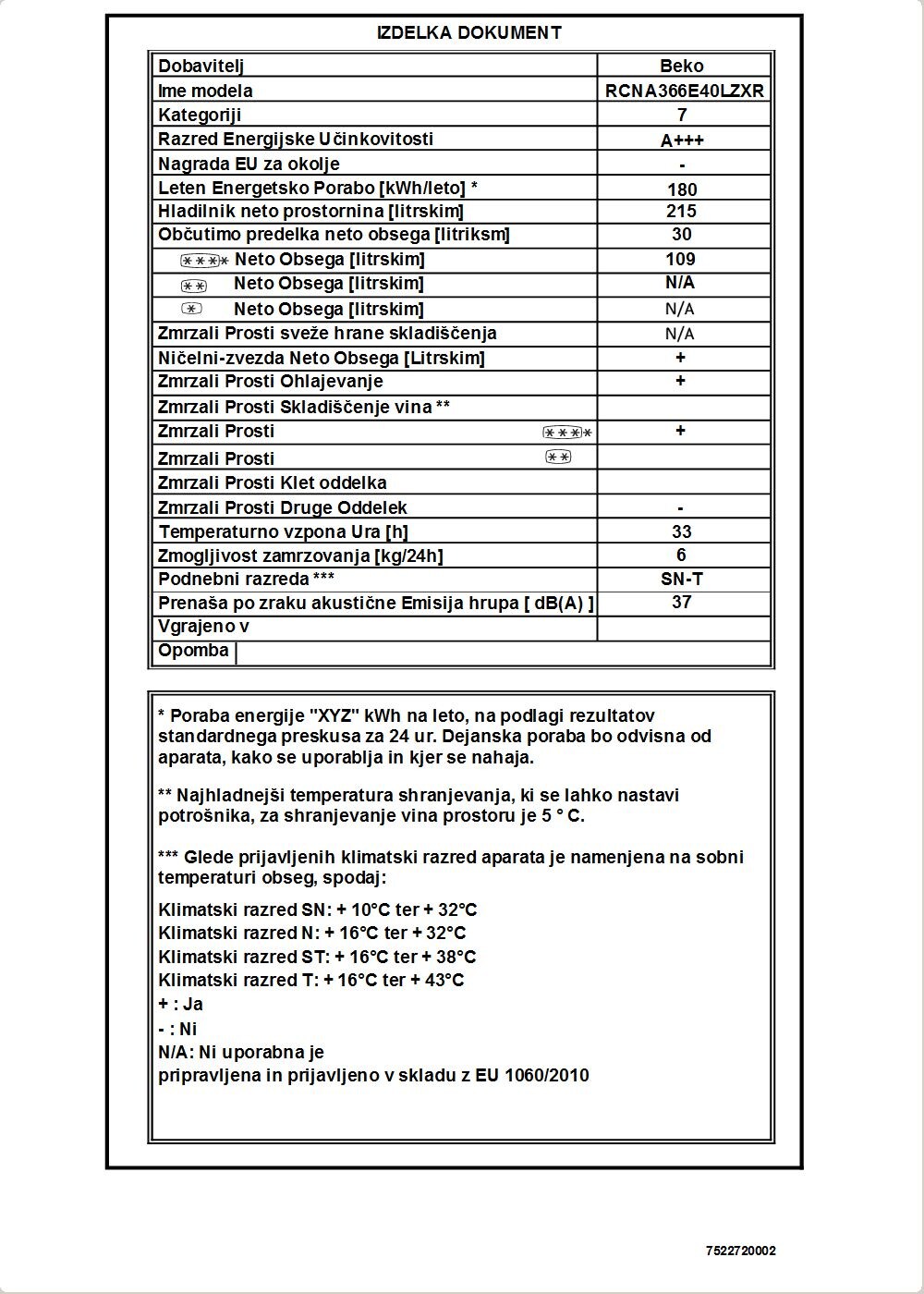 RCNA366E40LZXR: Hladilnik-zamrzovalnik (Zamrzovalnik spodaj, 59.5 cm)