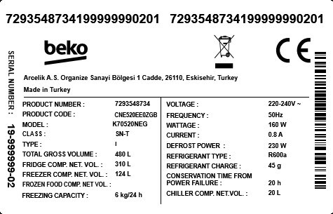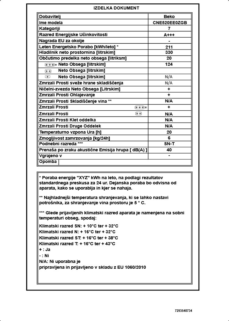 CNE520EE0ZGB: Hladilnik-zamrzovalnik (Zamrzovalnik spodaj, 70 cm)