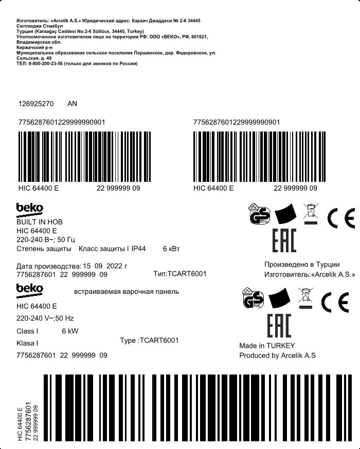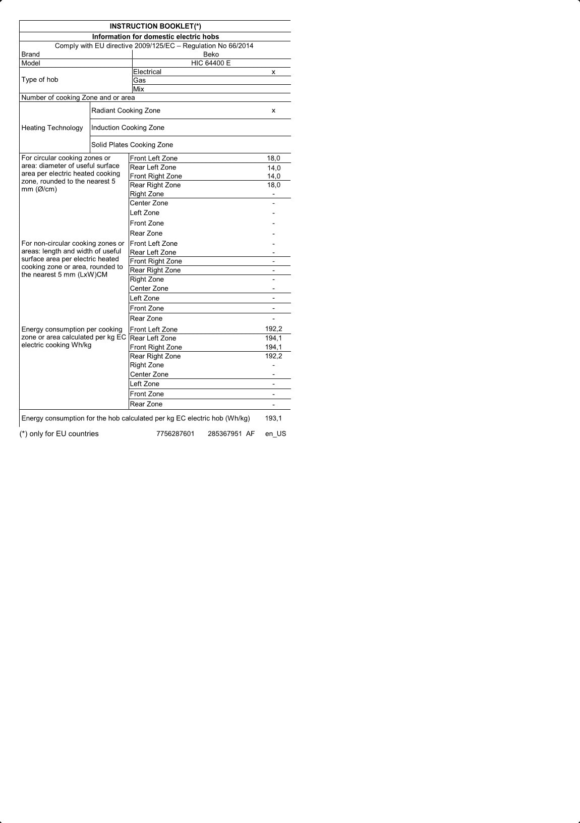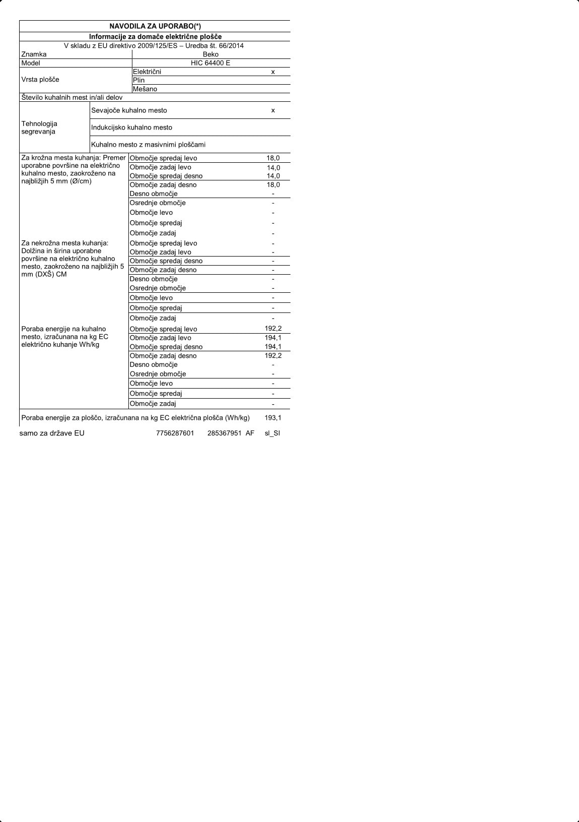 HIC 64400 E: Vgradni štedilnik (Steklokeramična, 60 cm)