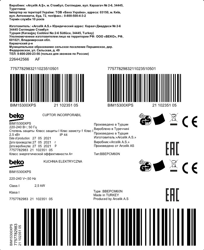 BIM15300XPS: Vgradna pečica (60 cm, 71 L)