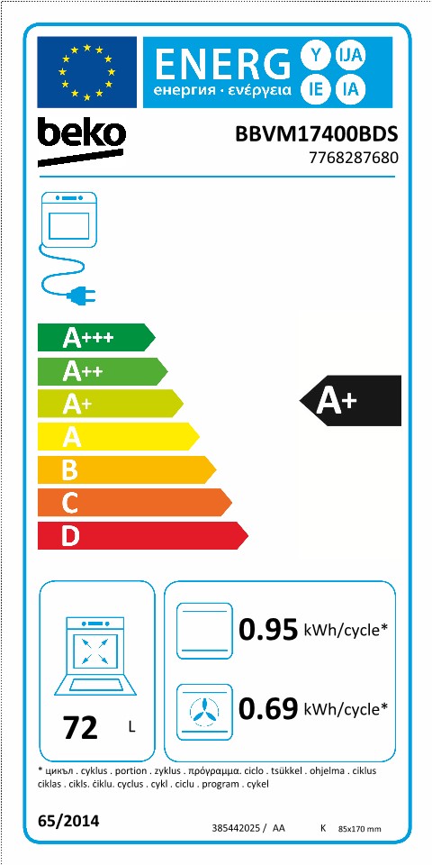 BBVM17400BDS: Vgradna pečica (60 cm, 72 L)