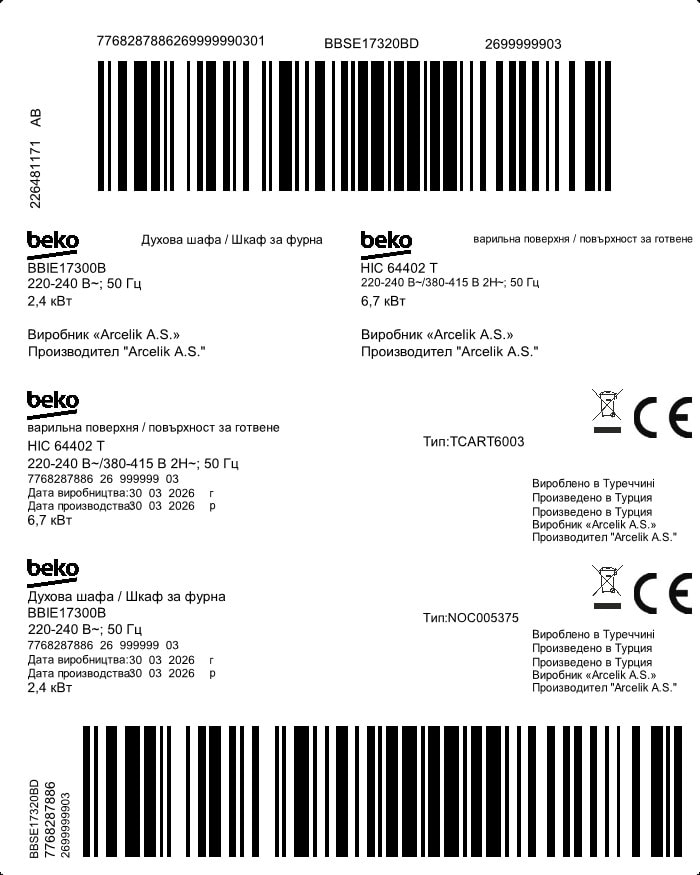 BBSE17320BD: Vgradni set (S pomočjo ventilatorja Oven / Steklokeramična Hob)