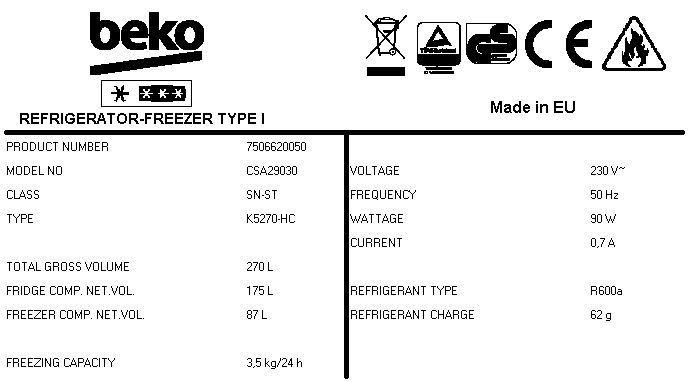 CSA29030: Chladnička s mrazničkou (Mraznička dole, 54 cm)