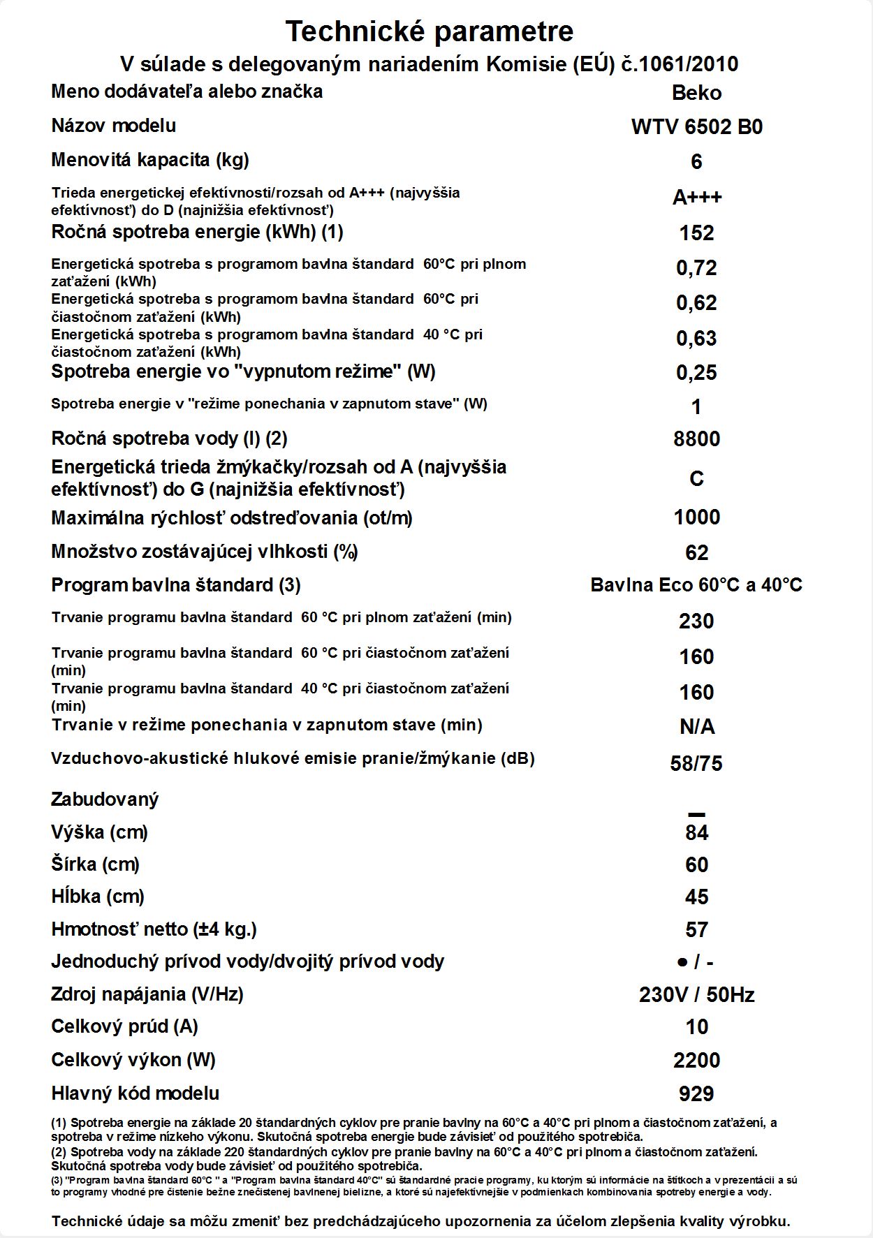 WTV 6502 B0: Práčka (6 kg, 1000 ot./ min)