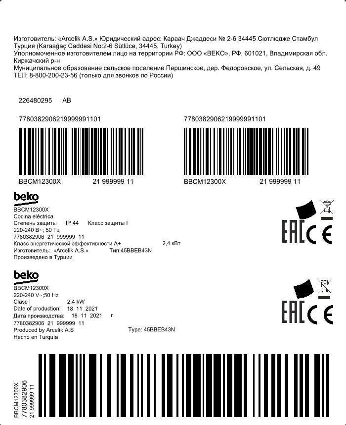 BBCM12300X: Vstavaná rúra (45 cm kompaktná 48 l)