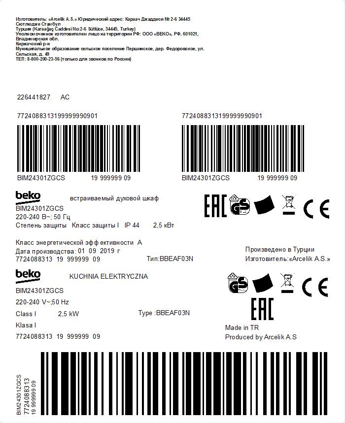 BIM24301ZGCS: Vstavaná rúra (60 cm 71 l)