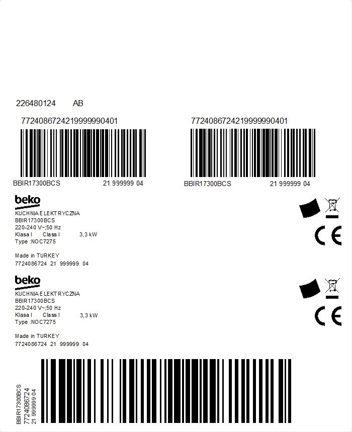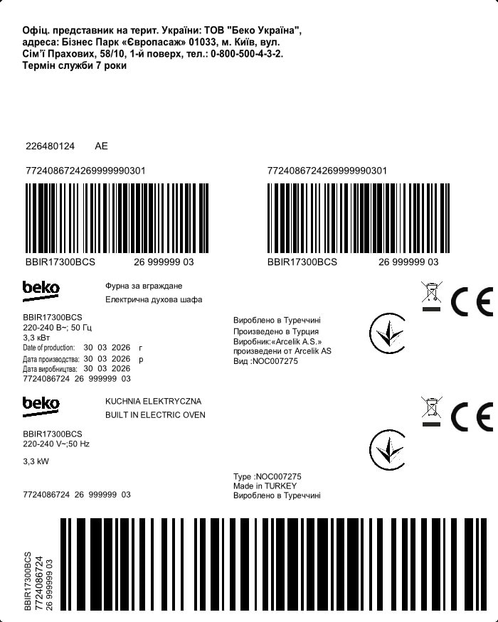 BBIR17300BCS: Vstavaná rúra (60 cm 72 l)