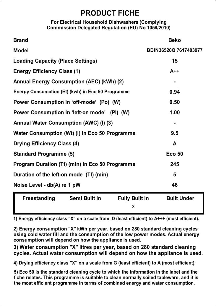BDIN36520Q: Plne integrovaná umývačka (15 sád riadu, Šírka 60 cm)