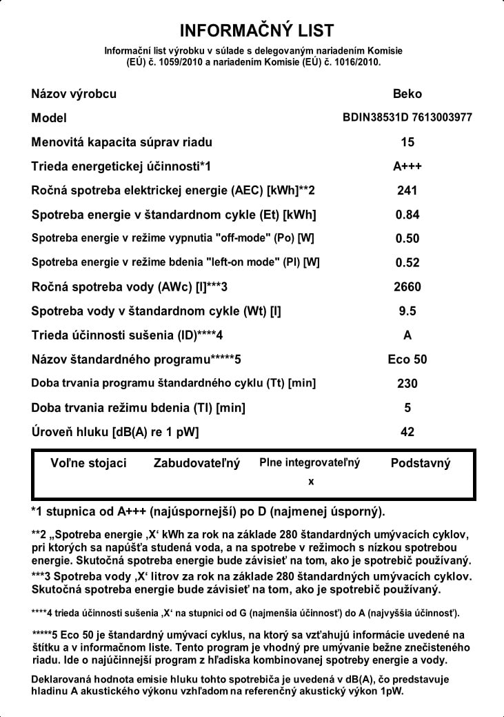 BDIN38531D: Plne integrovaná umývačka (15 sád riadu, Šírka 60 cm)