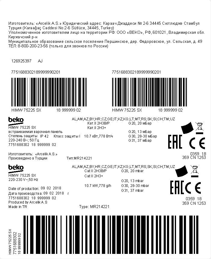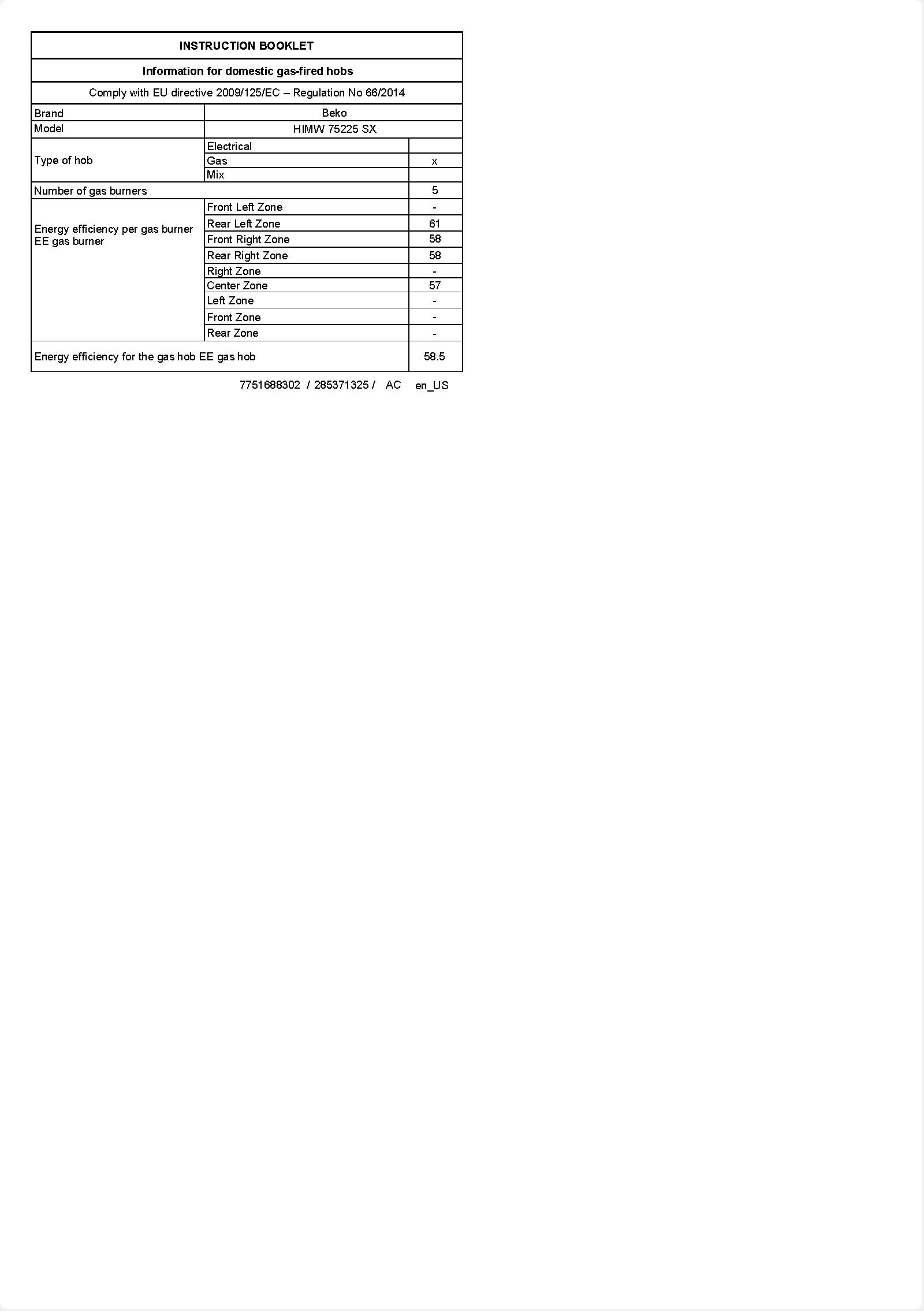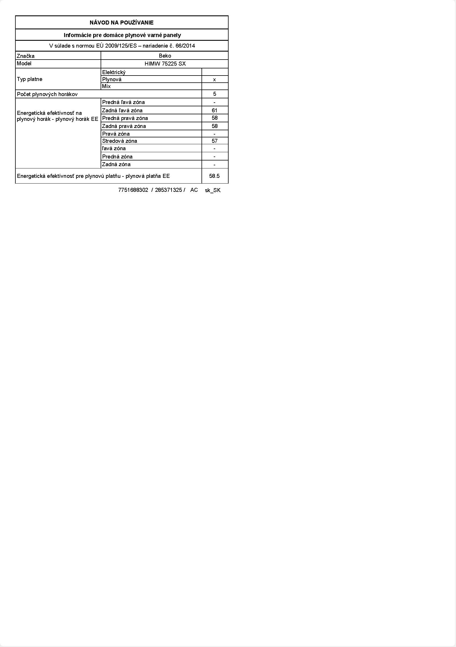 HIMW 75225 SX: Varná doska (Plyn, 70 cm)