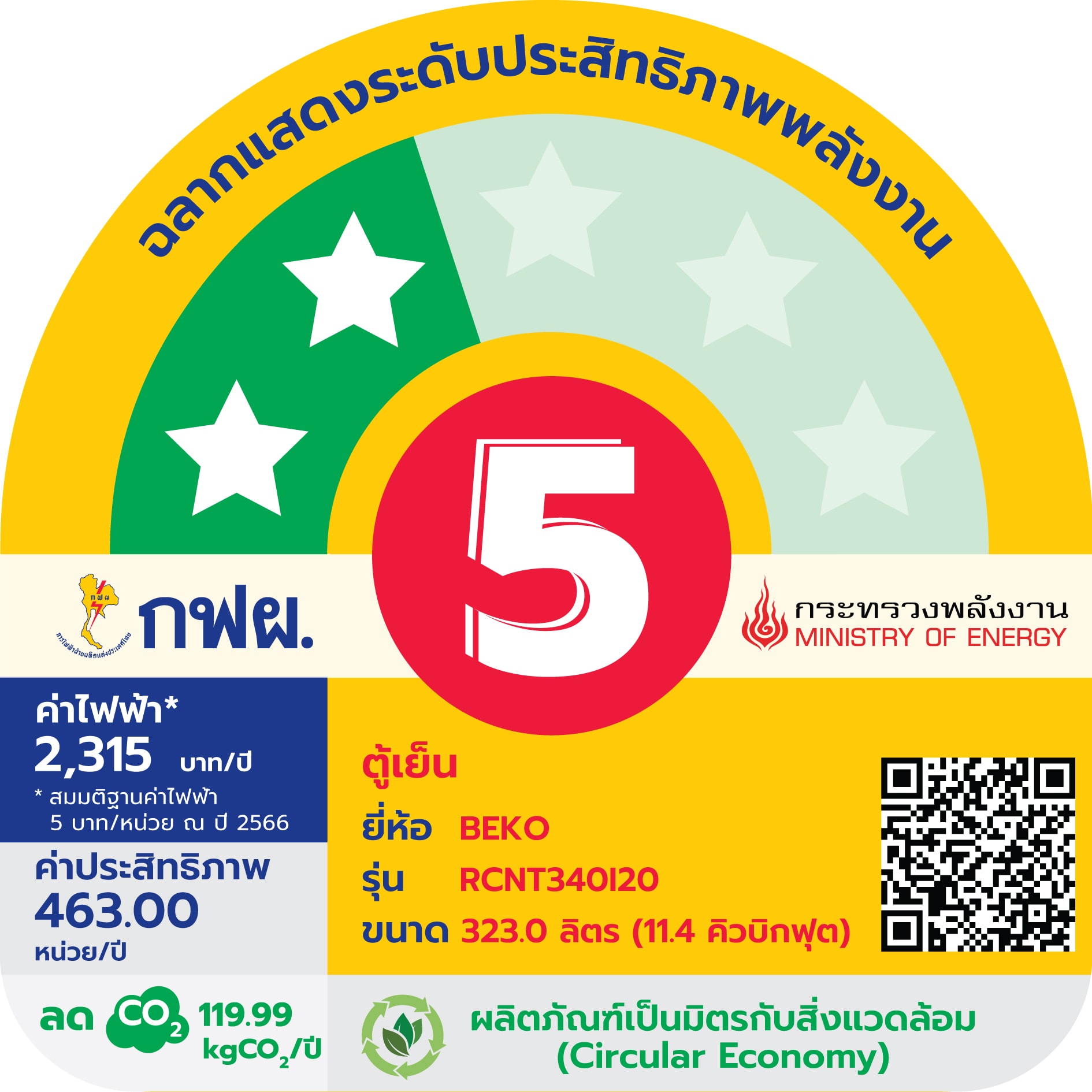 RCNT340I20SHFK: ตู้แช่เย็นและแช่แข็ง (ช่องแช่แข็งด้านล่าง, 60 ซม.)