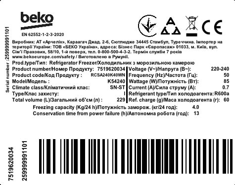 Характеристики холодильної камери