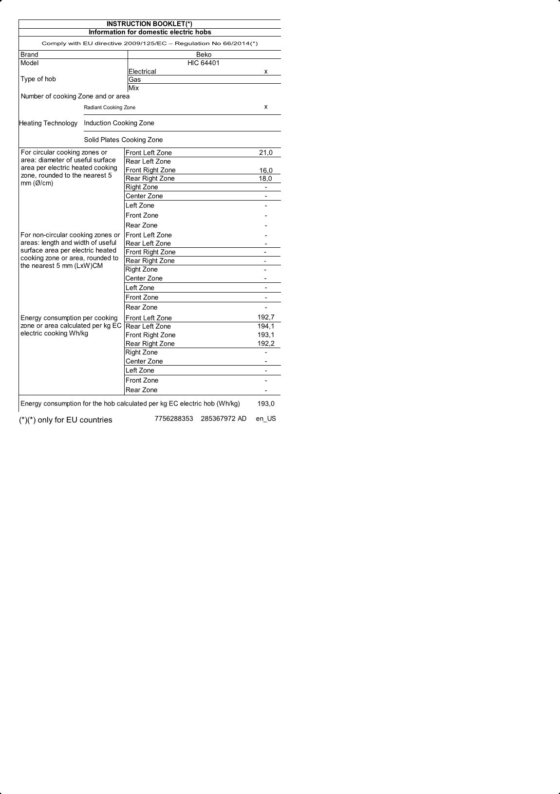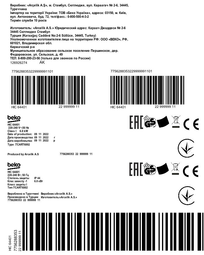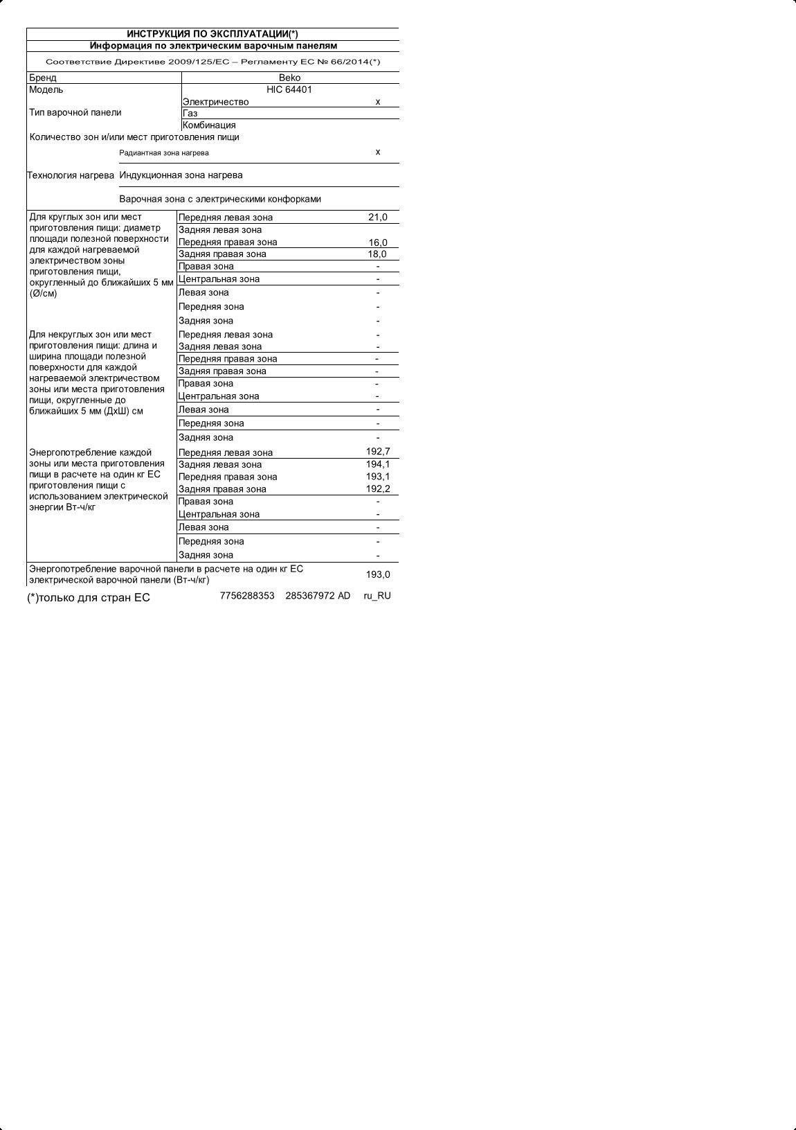 HIC 64401: Склокерамічна варильна поверхня, 60 см