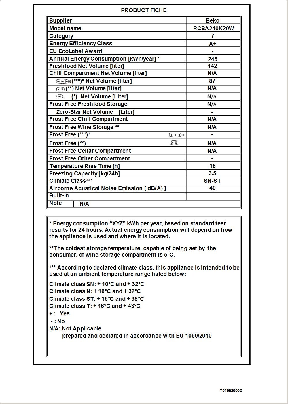 RCSA240K20W: Frigorifer i kombinuar (Me ngrirje poshtë, 54 cm)