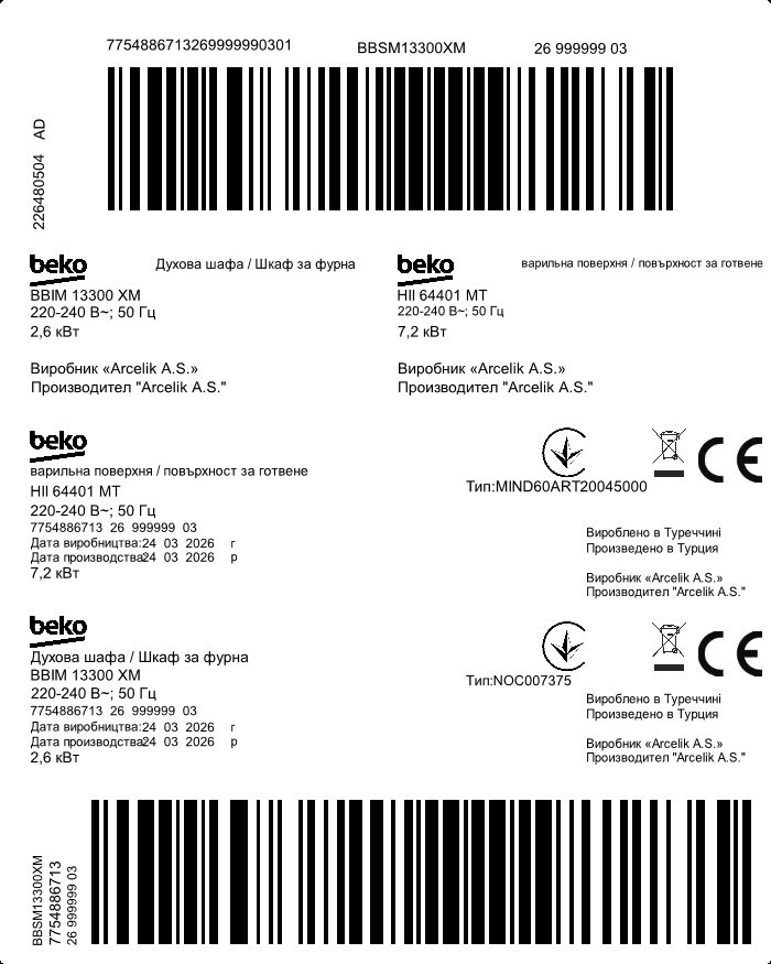 BBSM13300XM: Set montues (Multi-funksionale Oven / Induksion Hob)