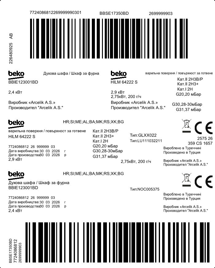 BBSE17350BD: Set montues (Ventilator ndihmës Oven / Karburant i dyfishtë Hob)