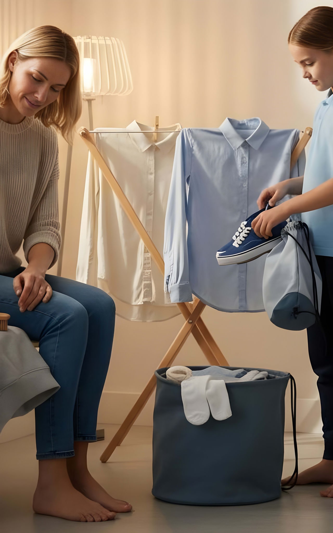 In spring and summer, take advantage of line drying outdoors. Sunlight supports natural freshness, and a breeze reduces the need for heat.