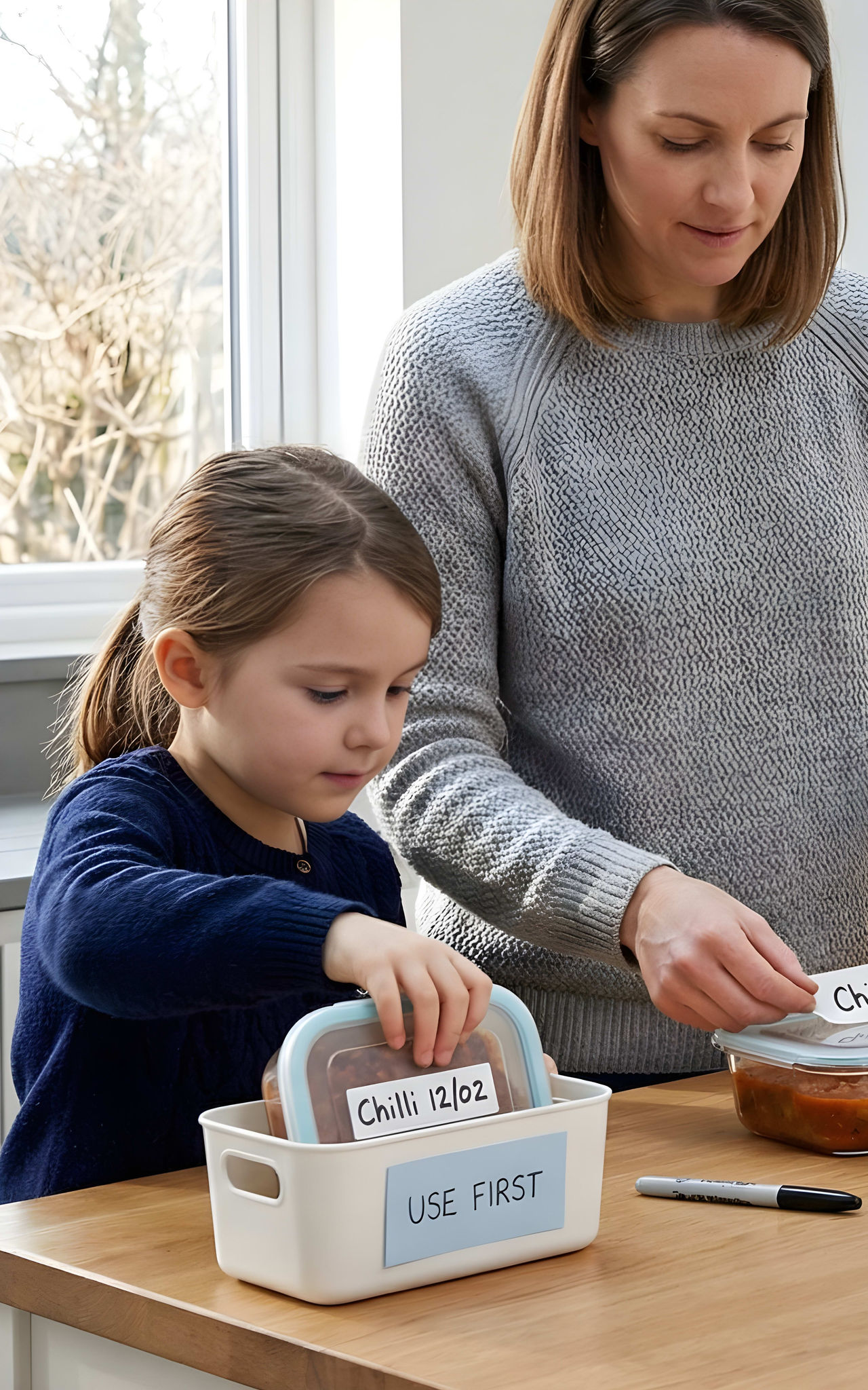 Mini checklist: - Portion into shallow containers for quick cooling. - Label with dish name and date. - Place on higher shelves, front row, to use first. - Freeze portions you will not eat within two days.