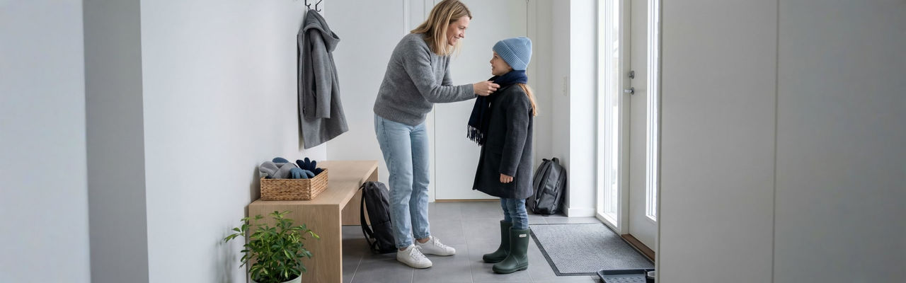 • Keep a hallway basket for gloves, hats, and scarves, grab-and-go reduces last-minute searches.