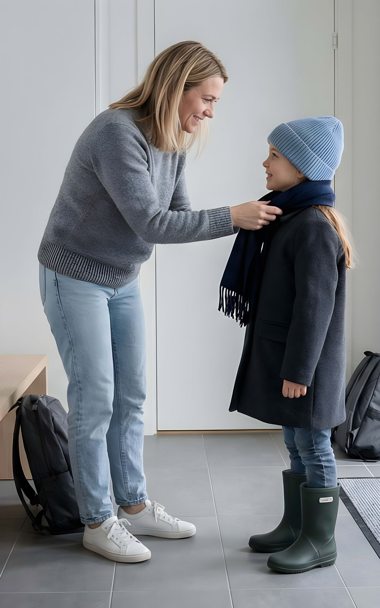 Gloves in pairs. Coats brushed and aired. Mud off wellies. Keep a small shoe brush and a mat by the door. A one-minute habit saves a messy trail and protects floors.