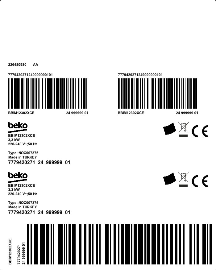 BBIM12302XCE: Built-In Oven (60 cm, 72 L)